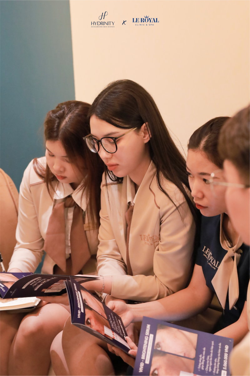 Buổi training nội bộ giữa Hydrinity và Le Royal Clinic đã mang đến không gian kết nối chuyên sâu, nơi hai đội ngũ chia sẻ kiến thức, công nghệ và ứng dụng sản phẩm trong chăm sóc và phục hồi da sau các liệu trình thẩm mỹ chuyên sâu.