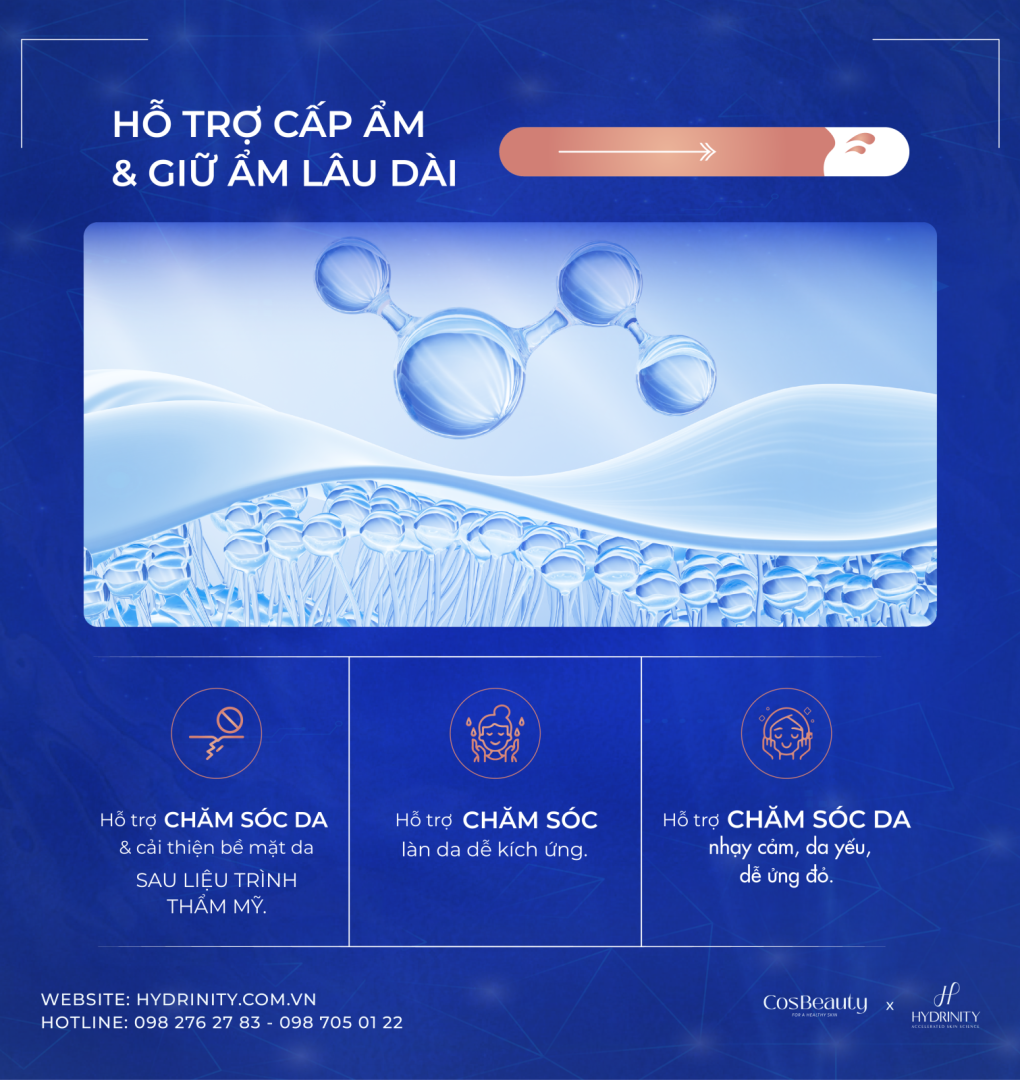 Tinh chất HA hỗ trợ chăm sóc da & cấp ẩm sâu phù hợp với mọi loại da, kể cả da nhạy cảm, da yếu,